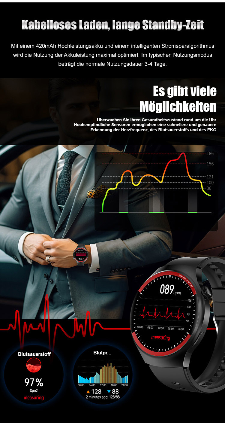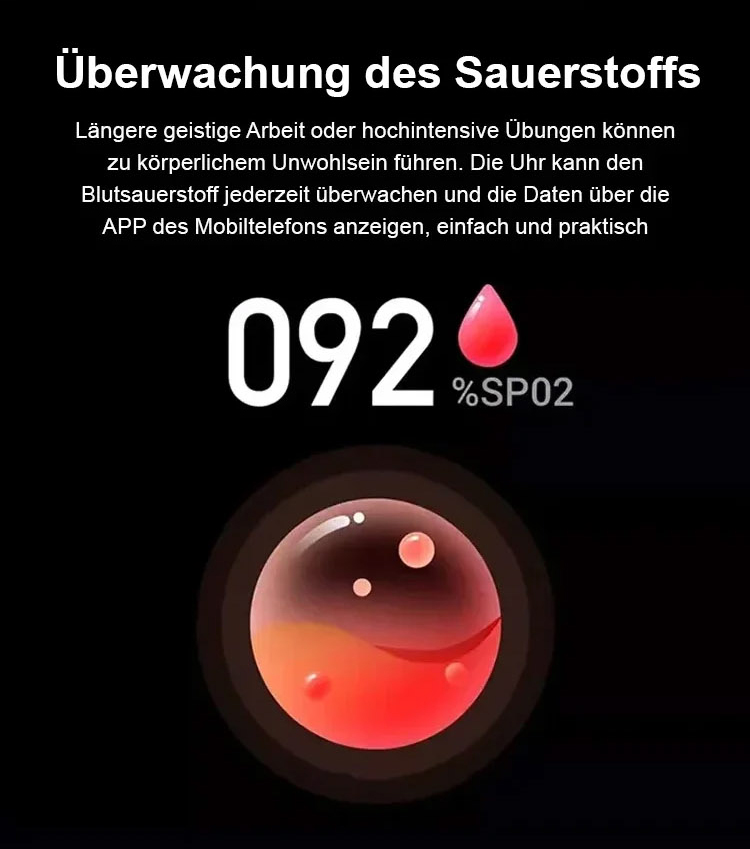 Mit 3 internationalen patentierten Überwachungsalgorithmen ausgestattet, erfasst sie exakt die vier zentralen Gesundheitsdaten: Blutzuckertendenz, Blut Sauerstoff, Herzfrequenz und Körpertemperatur. Entspricht der medizinischen Präzisionsstandard der EU. 🩺