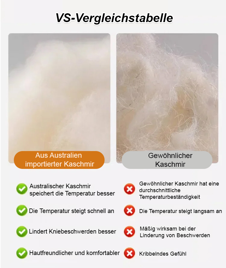 Exklusiv für die Wärmepflege der Gelenke entwickelt 🧴, gefertigt aus hochwertigem, dickem Kaschmir 🐑 mit einer wolkenweichen und zarten Textur ☁️. Mit integrierter Wärmekreislauftechnologie 🔄 hält es auch im Winter eine konstante Temperatur von 37 °C 🌡️ aufrecht – wie ein individueller tragbarer Wärmeerzeuger 🔥 für die Knie, der kalten Gelenken kontinuierlich Wärme zuführt. Frühes Tragen bringt bessere Pflegeeffekte ✅, tragbar für alle Altersgruppen und schützt Ihre Gelenkgesundheit unkompliziert 💪.